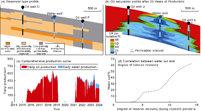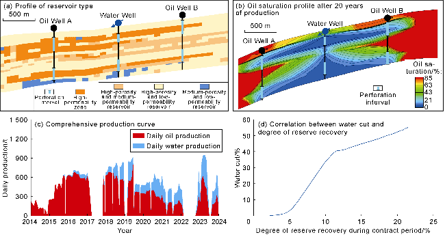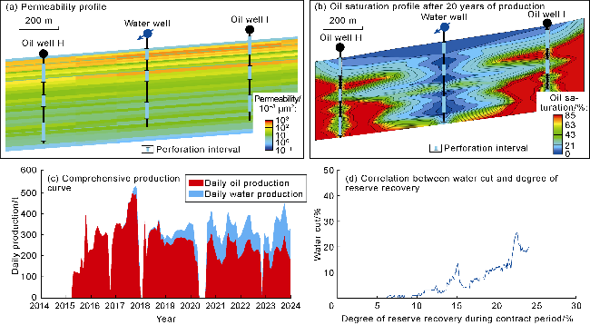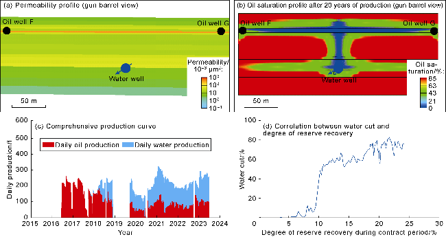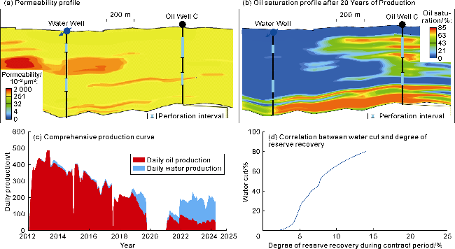 Fig. 7c). The water cut rapidly rose to over 50%. When the degree of reserve recovery reached 25%, the water cut reached 80%, resulting in poor waterflooding efficiency (